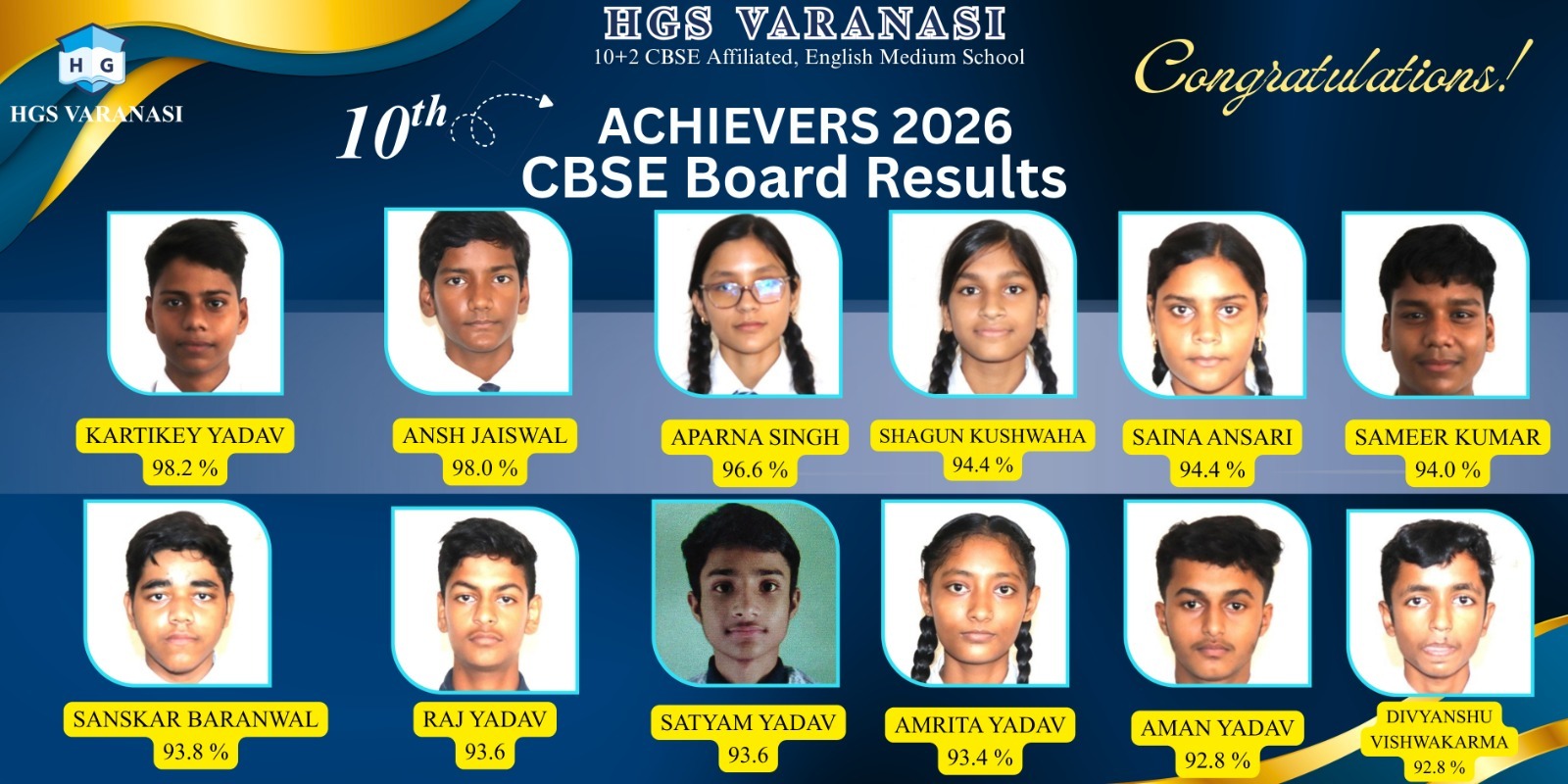 सीबीएसई हाई स्कूल परिणाम में एचजी स्कूल डुबकियां का शत-प्रतिशत प्रदर्शन