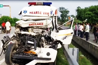 एंबुलेंस कंटेनर से टकराई, पति का शव लेकर लौट रही पत्नी समेत दो की मौत