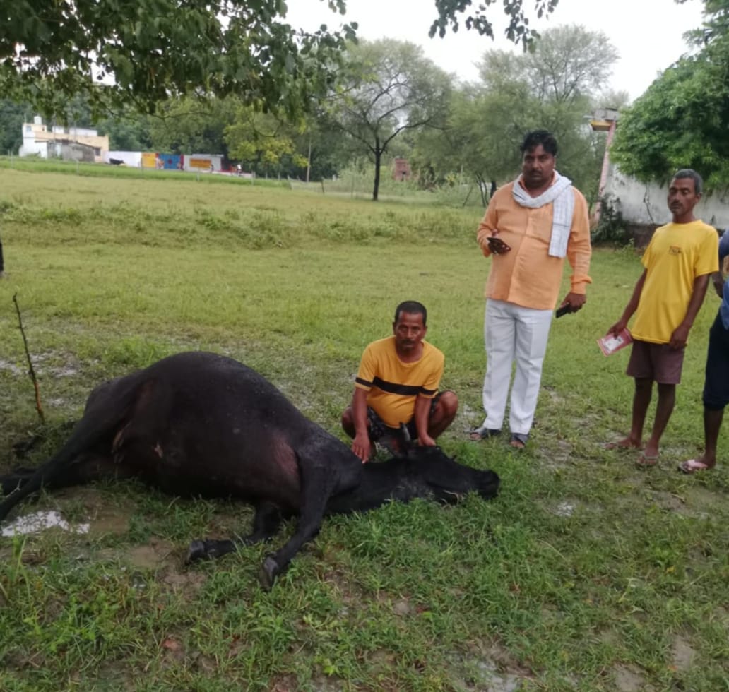 ग्राम पंचायत सुंगुलपुर निवासी नंदलाल यादव पुत्र स्व. सेवालाल यादव की काली रंग की गाय पेड़ के नीचे बैठी हुई थी। इसी दौरान जोरदार आवाज के साथ गिरी बिजली उसकी चपेट में आ गई और मौके पर ही उसकी मौत हो गई।