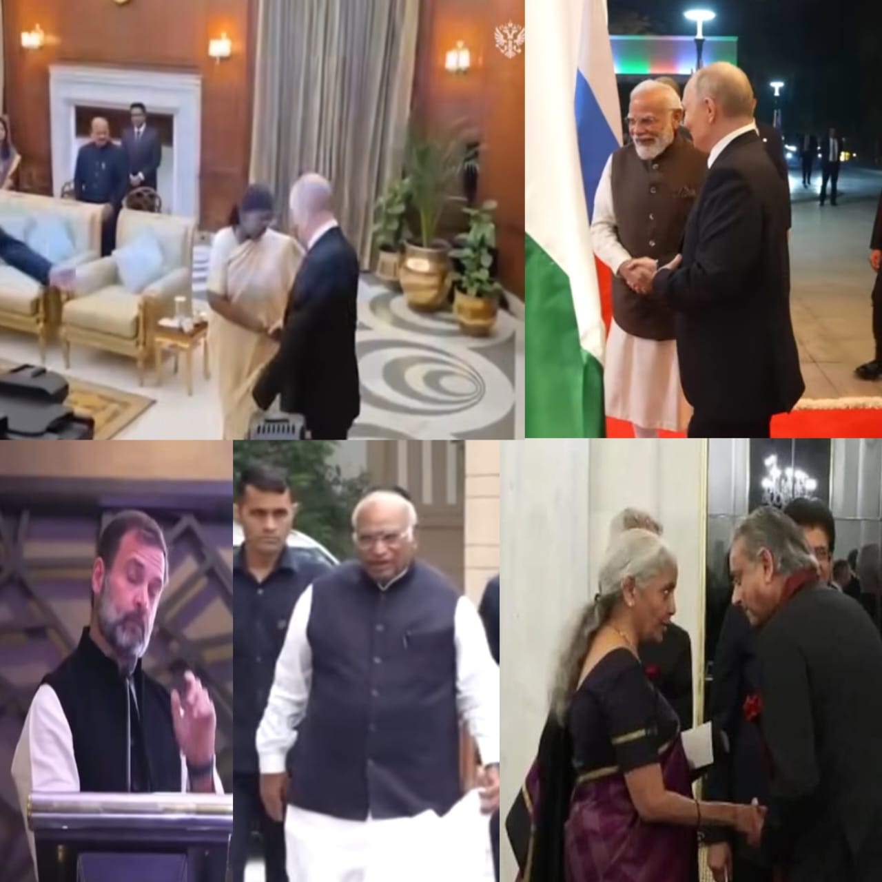 नई दिल्ली। रूस के राष्ट्रपति व्लादिमीर पुतिन के सम्मान में शुक्रवार रात राष्ट्रपति भवन में आयोजित डिनर कार्यक्रम में कांग्रेस नेता और लोकसभा में नेता प्रतिपक्ष राहुल गांधी तथा कांग्रेस अध्यक्ष मल्लिकार्जुन खड़गे को आमंत्रण नहीं दिया गया। वहीं कांग्रेस सांसद शशि थरूर को डिनर में शामिल होने के लिए आमंत्रित किया गया है।