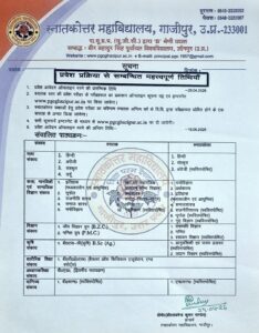 गाजीपुर। स्नातकोत्तर महाविद्यालय, गाजीपुर में शैक्षणिक सत्र 2026-27 के लिए स्नातक एवं स्नातकोत्तर पाठ्यक्रमों में प्रवेश हेतु ऑनलाइन आवेदन प्रक्रिया 25 अप्रैल 2026 से प्रारंभ की जाएगी। इच्छुक अभ्यर्थी महाविद्यालय की आधिकारिक वेबसाइट के माध्यम से प्रवेश परीक्षा के लिए आवेदन कर सकेंगे।