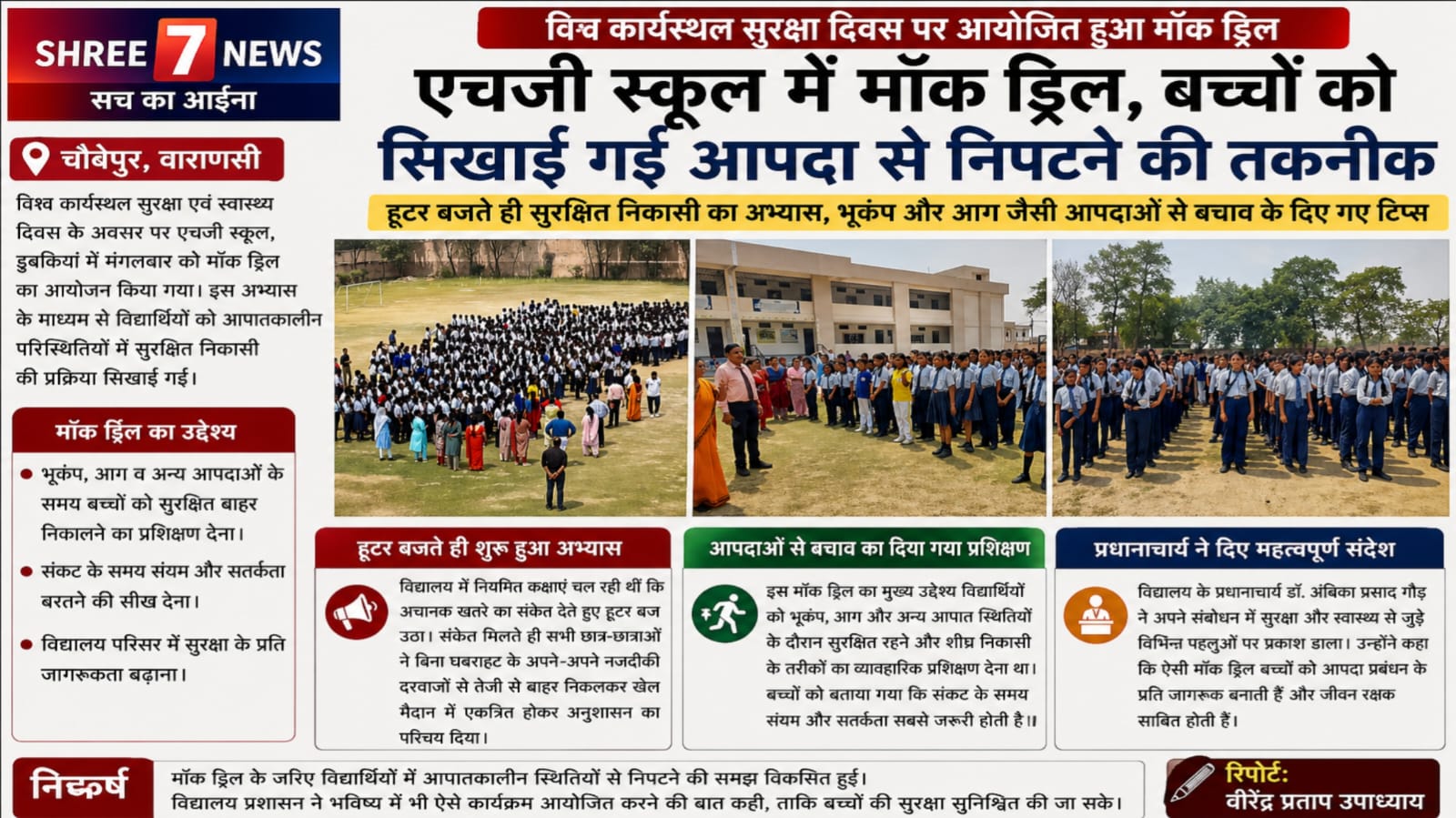 विश्व कार्यस्थल सुरक्षा दिवस पर एचजी स्कूल में मॉक ड्रिल, बच्चों को सिखाई आपदा से निपटने की तकनीक