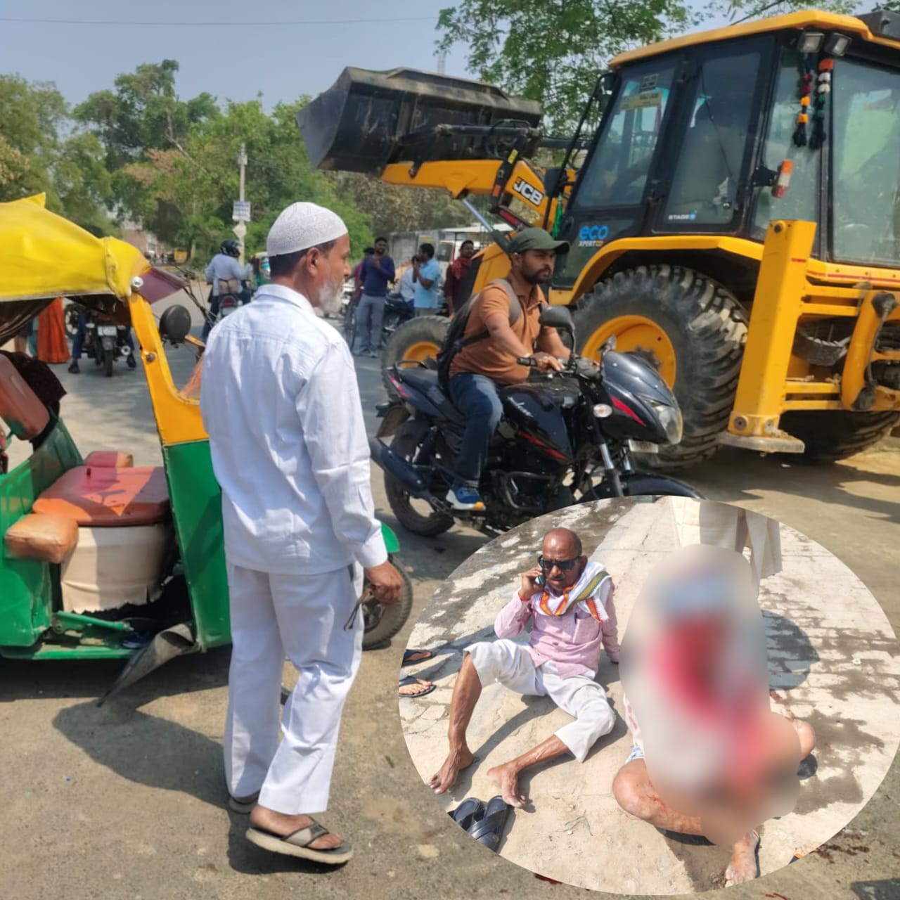 जेसीबी की टक्कर से ऑटो पलटी, तीन घायल—एक की हालत गंभीर