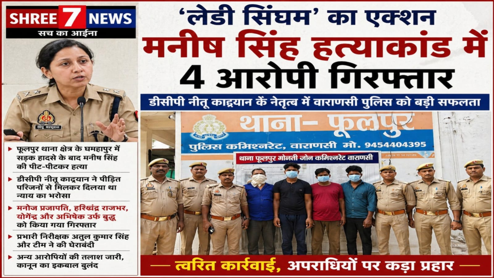 ‘लेडी सिंघम’ का सख्त एक्शन: मनीष सिंह हत्याकांड में 4 आरोपी गिरफ्तार