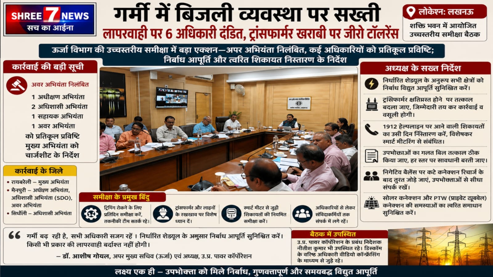 गर्मी में बिजली व्यवस्था पर सख्ती: लापरवाही पर 6 अधिकारी दंडित, ट्रांसफार्मर खराबी पर जीरो टॉलरेंस