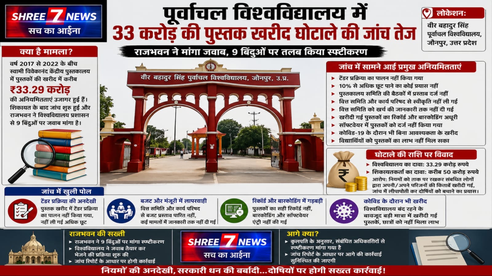 पूर्वांचल विश्वविद्यालय में करोड़ों की पुस्तक खरीद पर सवाल, राजभवन सख्त—जांच ने खोली अनियमितताओं की परतें